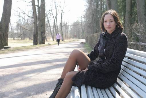 Фото сессия девушки в бежевых чулках в осеннем старом парке. Часть1.