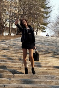 Девушки в колготках и коротких юбках на улице.