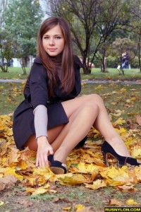 Девушки в колготках на фоне осенней листвы...